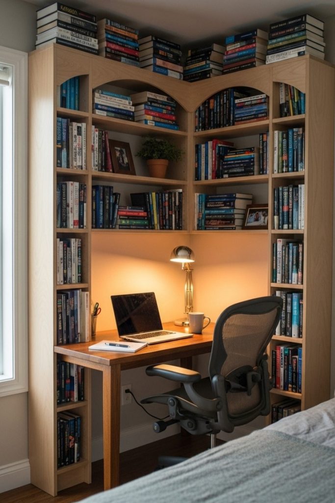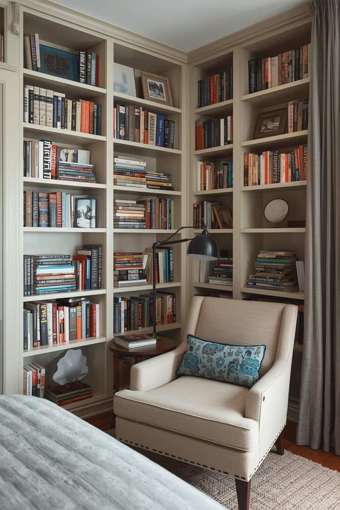 1. Cozy Built-In Bedroom Bookshelf