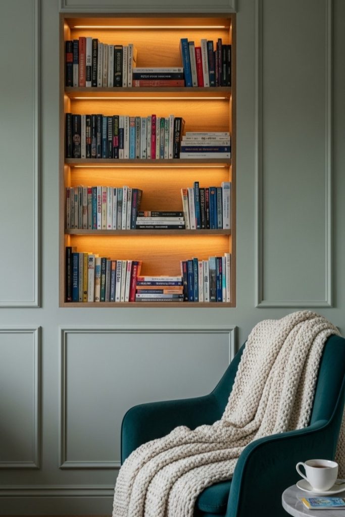 4. Recessed Wall Niche Bookshelf Lighting