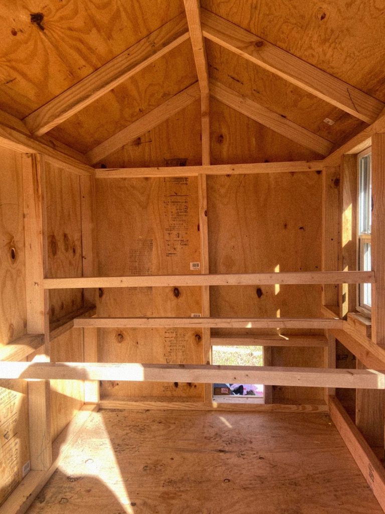 - Attach the Roosting Bars: Cut 2x4s to the length of your coop. Securely attach the first roosting bar to the support brackets. It should be parallel to the back wall.