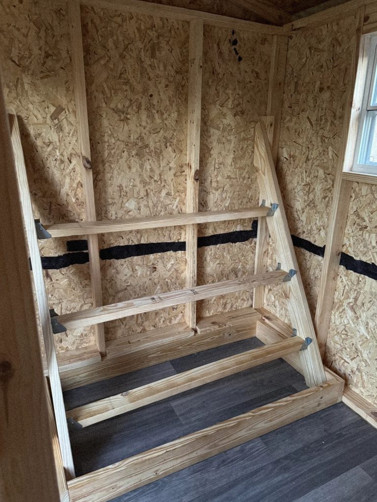 - Secure the Rungs: Attach the rungs horizontally between the two angled side supports. Use a level to ensure each rung is flat. Securely fasten them with wood screws for stability. For added strength, you can use L-brackets at each connection point.