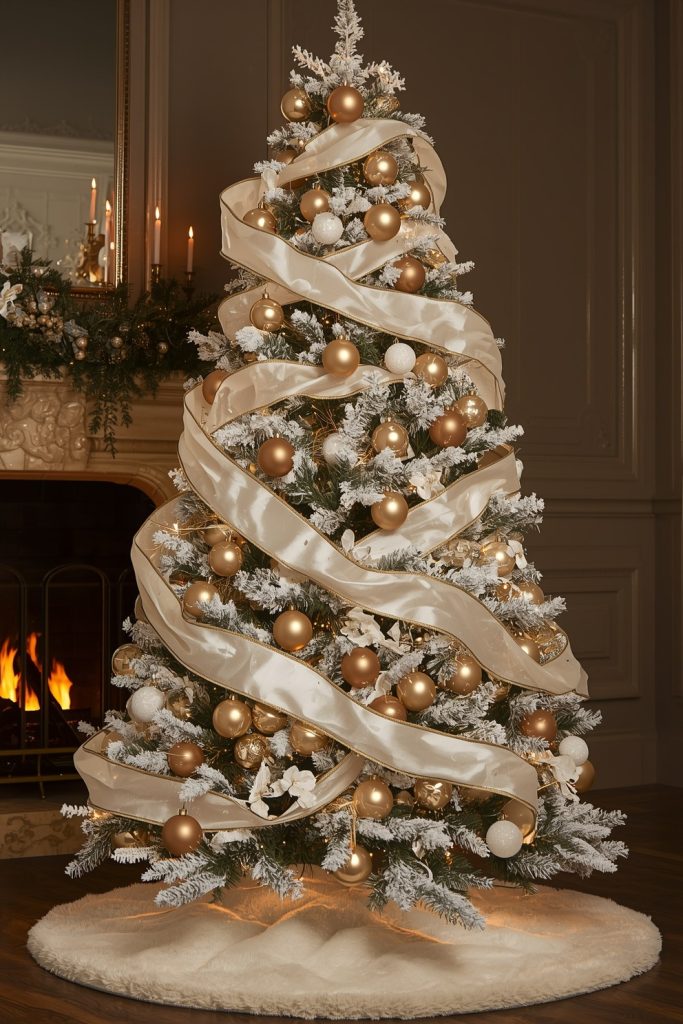 Why wouldn’t you want your tree to look this incredibly glamorous? I absolutely adore the sheer elegance of this cascading look. This style is perfect if you want to skip the standard rigid spiral.