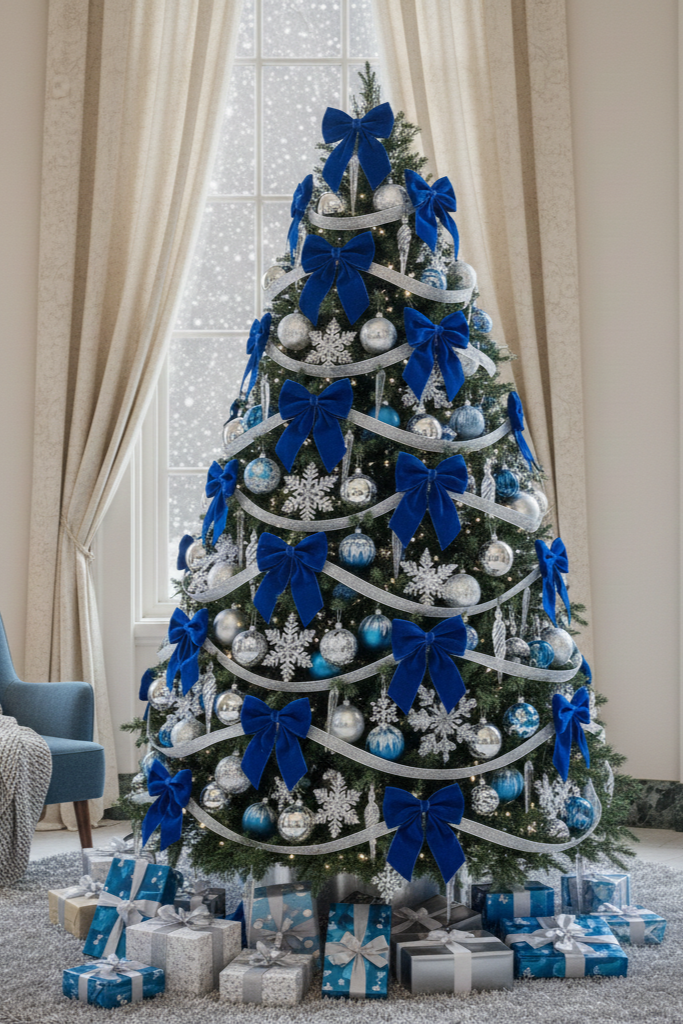 The key here is uniformity. Every bow is the same size and material, making them look like a cohesive pattern. They create an amazing visual texture that really fills in any gaps in the tree.